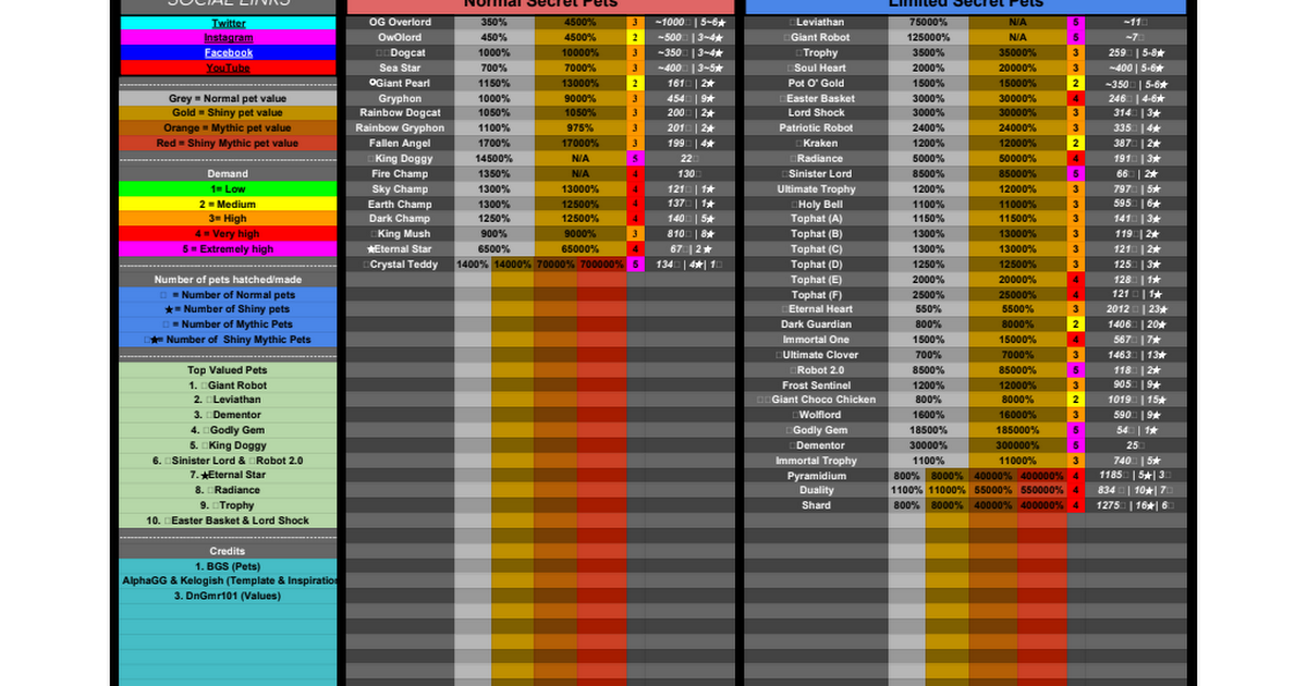 Pet Simulator 2 Official Pet Value List Pet Simulator 2