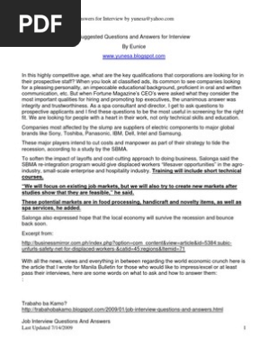 Suggested Interview Questions And Answers Massage Hyperlink